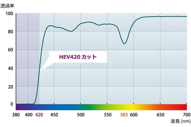 さらには最近の研究で目への影響が明らかになったHEV420領域も大幅にカットする新基準UVカット機能を搭載しています。